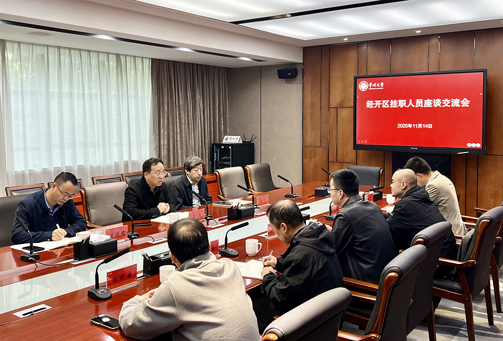 11月14日上午,学校在科教城校区文正楼第二会议室举行经开区挂职人员座谈交流会。会议由组织部部长秦义主持,科技处、产学研处等相关部门负责人及全体挂职人员参加座谈。