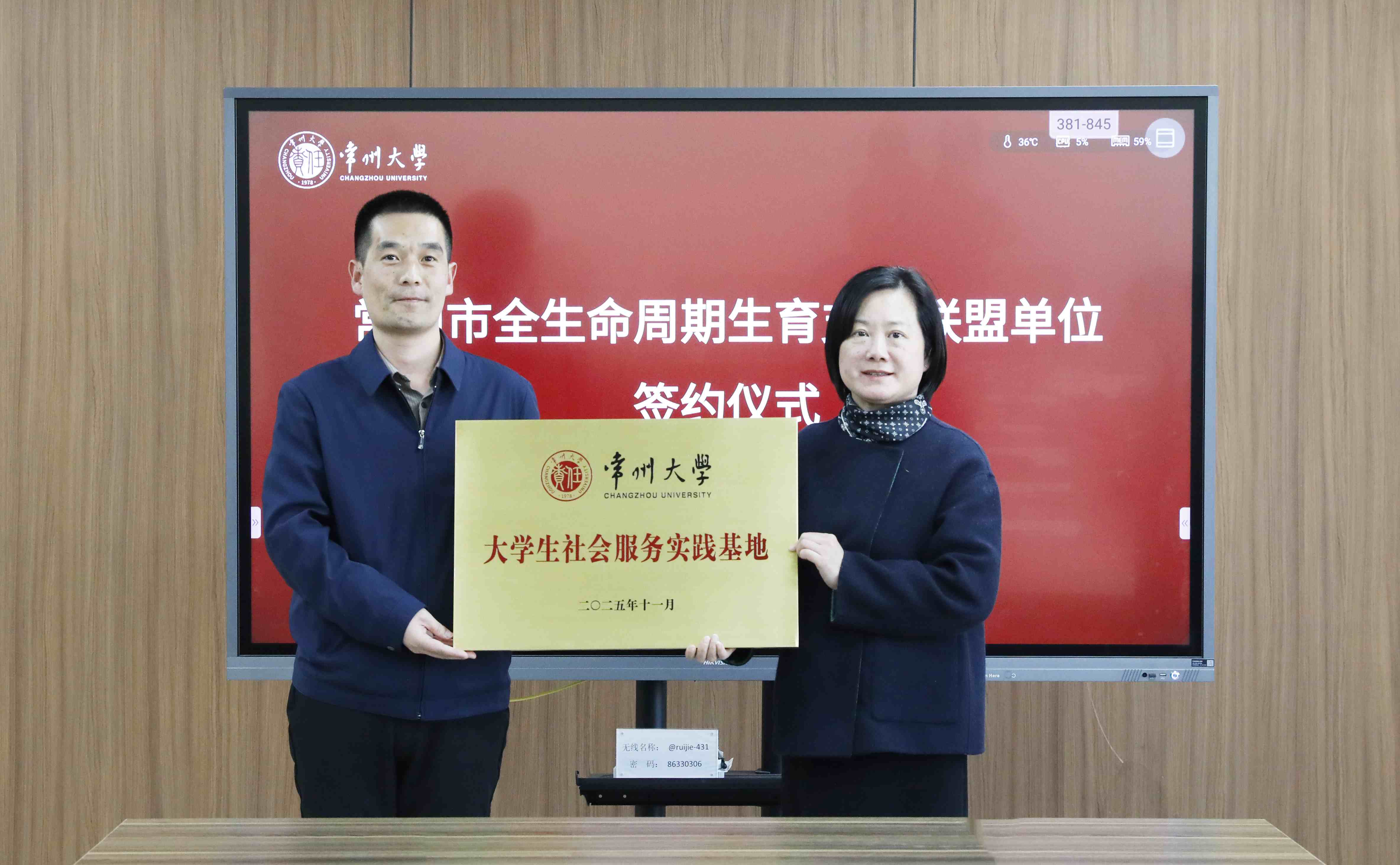签约仪式上,党委书记徐守坤代表学校致欢迎辞,他强调高校、医院与民主党派市级组织加强协作,对于共同应对人口问题具有重大意义。市妇幼保健院院长刘志伟介绍了开展健康高校行活动的初衷和思路九三学社市委会主委孙秀峰在讲话中充分肯定了常州大学在支持党派建设和服务常州社会发展方面所做出的突出贡献。市妇幼保健院、九三学社市委会、常州大学三方现场签署了“全生命周期生育支持联盟单位协议书学校向市妇幼保健院颁授“大学生社会服务实践基地”铜牌