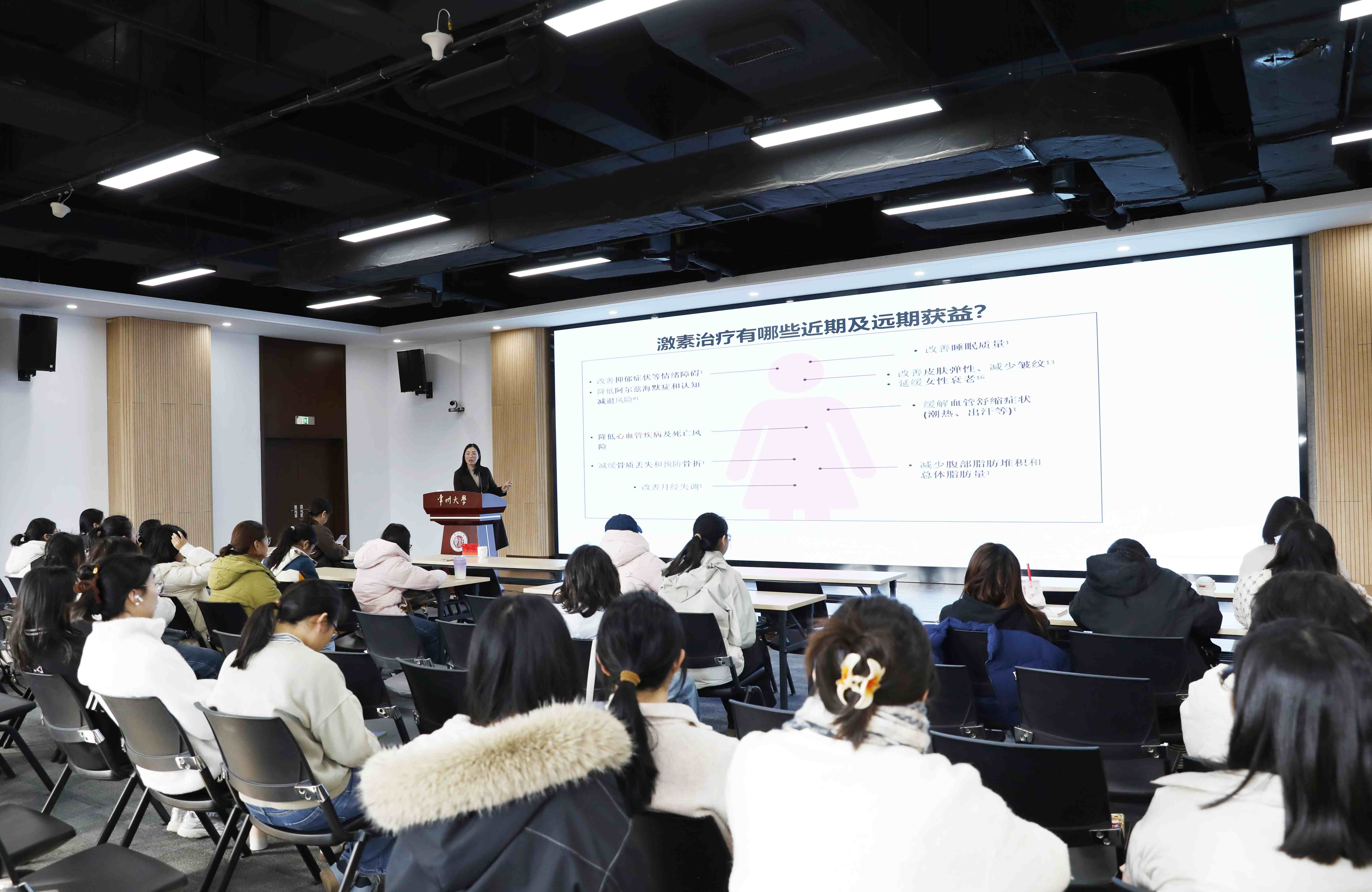 健康科普讲座由市妇幼保健院妇瘤一科医疗组组长、主任医师徐娟主讲。徐主任所做“洞见身体内在规律:女性全生命周期激素变化下的主动保健与疾病预防”的专题讲座,为在场师生带来了一场深入浅出、详实生动的健康知识普及课程