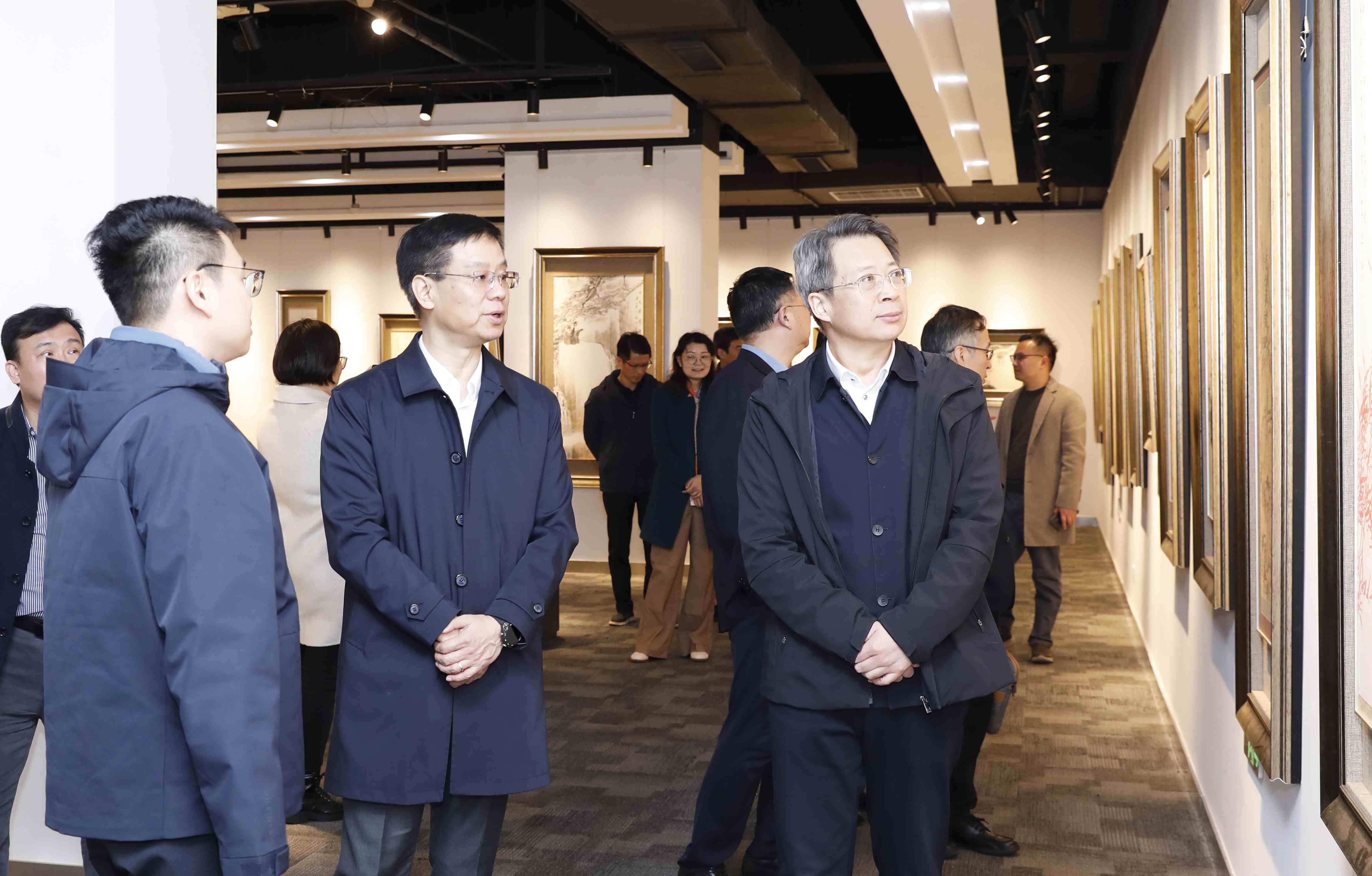 孙秀峰、刘志伟、张立莹、徐守坤等领导走访了科普讲座和义诊现场,并参观了校同心美育教育实践基地徐培晨美术馆。